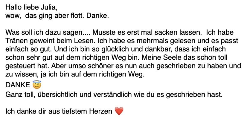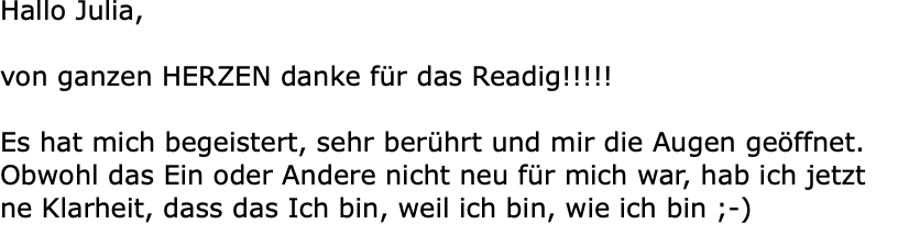 Das ist absolut okay. Viele meiner Kundinnen waren anfangs skeptisch und berührt, wie tief und stimmig das Reading für sie war.
